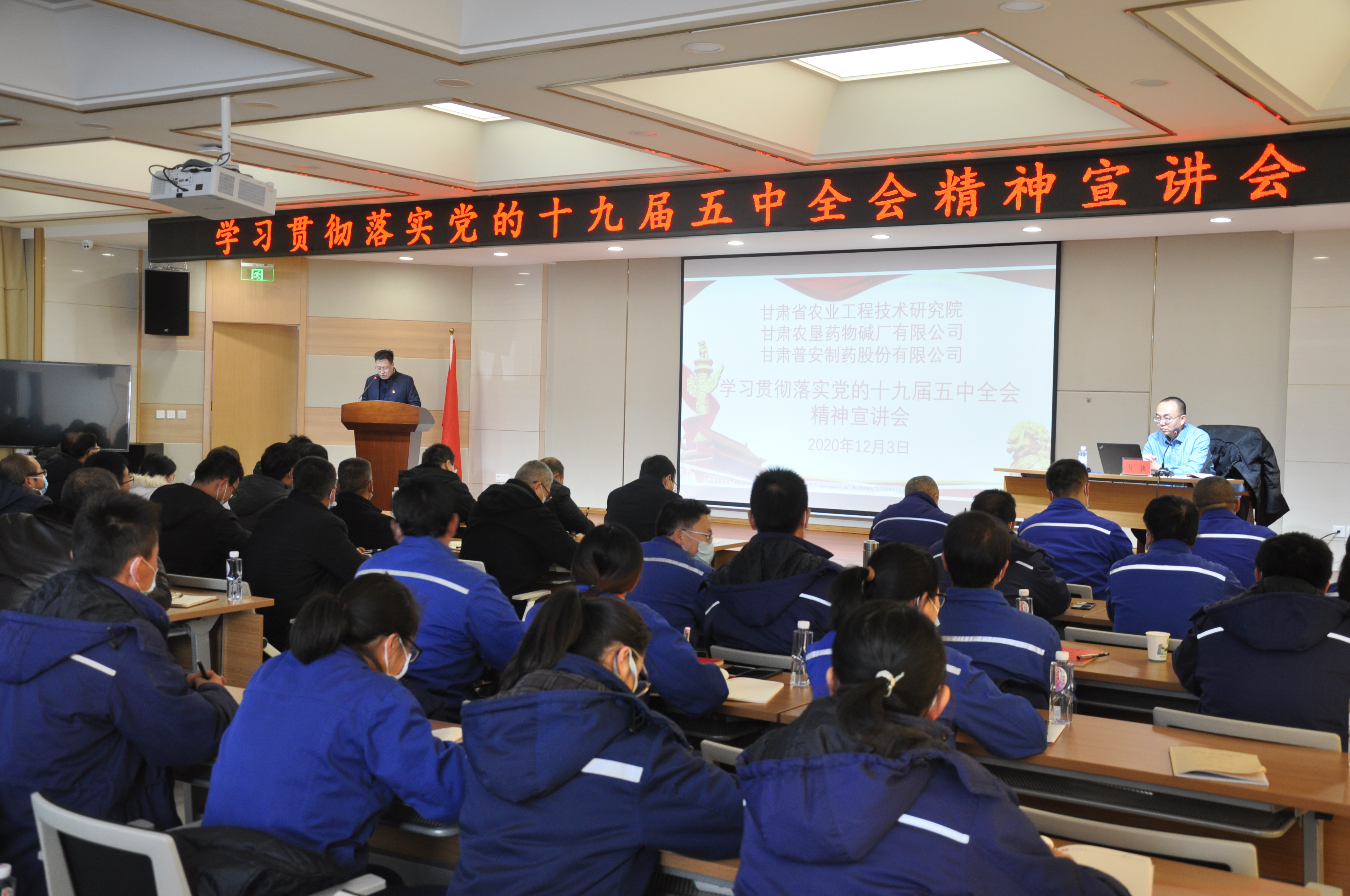 甘肅藥業集團普安制藥股份有限公司、甘肅省農墾工程技術研究院、甘肅農墾藥物堿廠有限公司聯合召開學習貫徹黨的十九屆五中全會精神宣講會