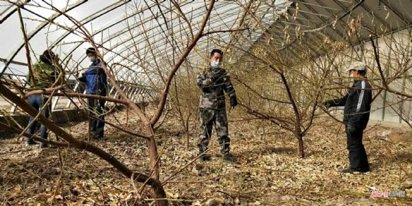 在永昌農(nóng)場的溫室大棚內(nèi),工作人員正在修剪油桃樹枝,讓每株樹冠保持一定形狀和大小,樹體結(jié)構(gòu)合理,枝條疏密得當(dāng),便于生長管理。12座大棚共計1200多棵樹,預(yù)計20日前完成修剪。農(nóng)場及早聯(lián)系農(nóng)資調(diào)運,為油桃提前上市做好準(zhǔn)備。