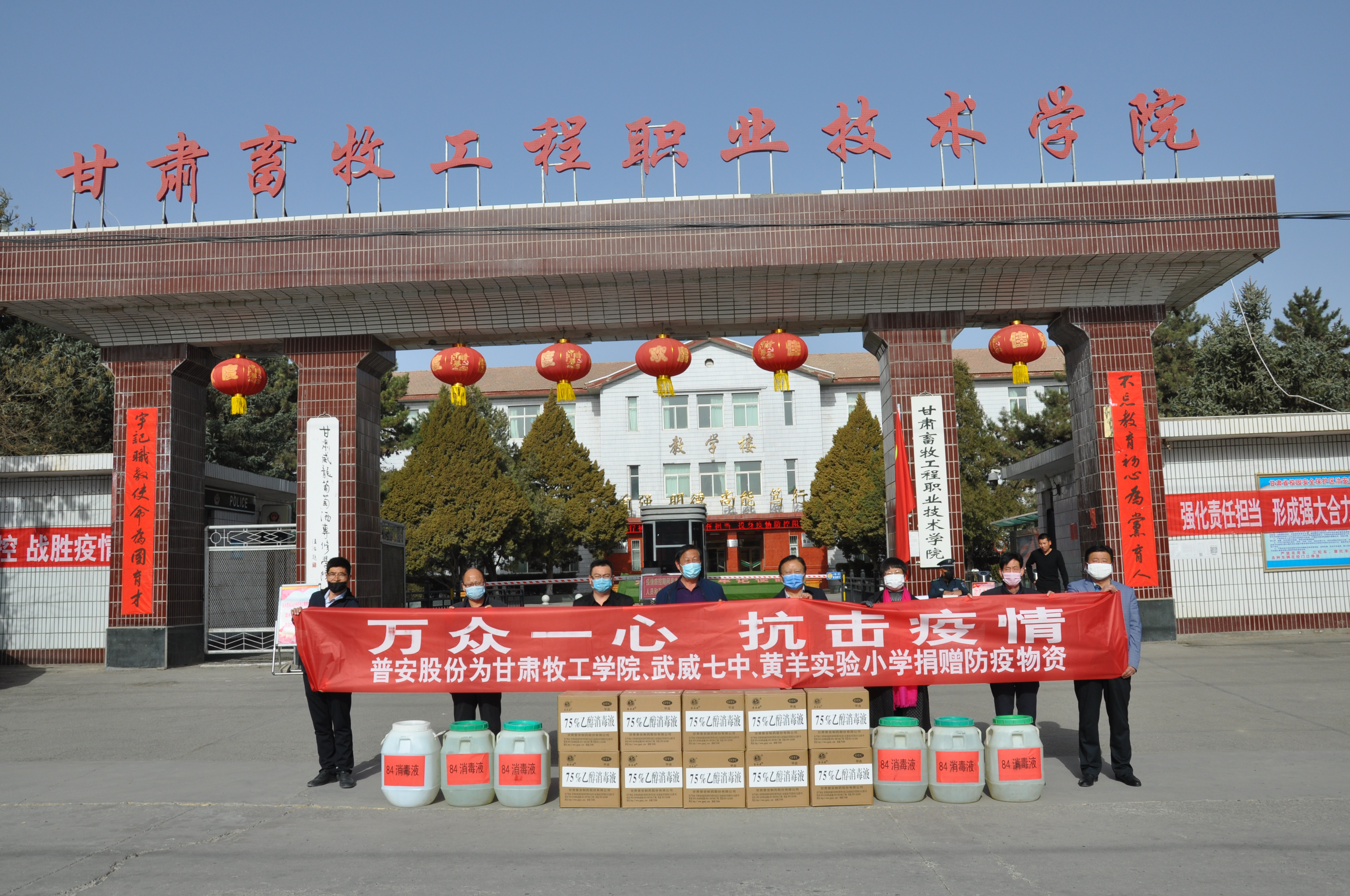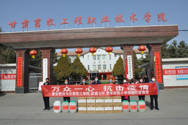 3月20日上午,普安股份向甘肅畜牧工程職業技術學院、武威第七中學、涼州區黃羊實驗小學捐贈84消毒液、75%酒精等一批防疫物資,助力疫情防控工作。這也是疫情發生后,普安股份彰顯國企擔當,助力疫情防控的又一次愛心捐贈。