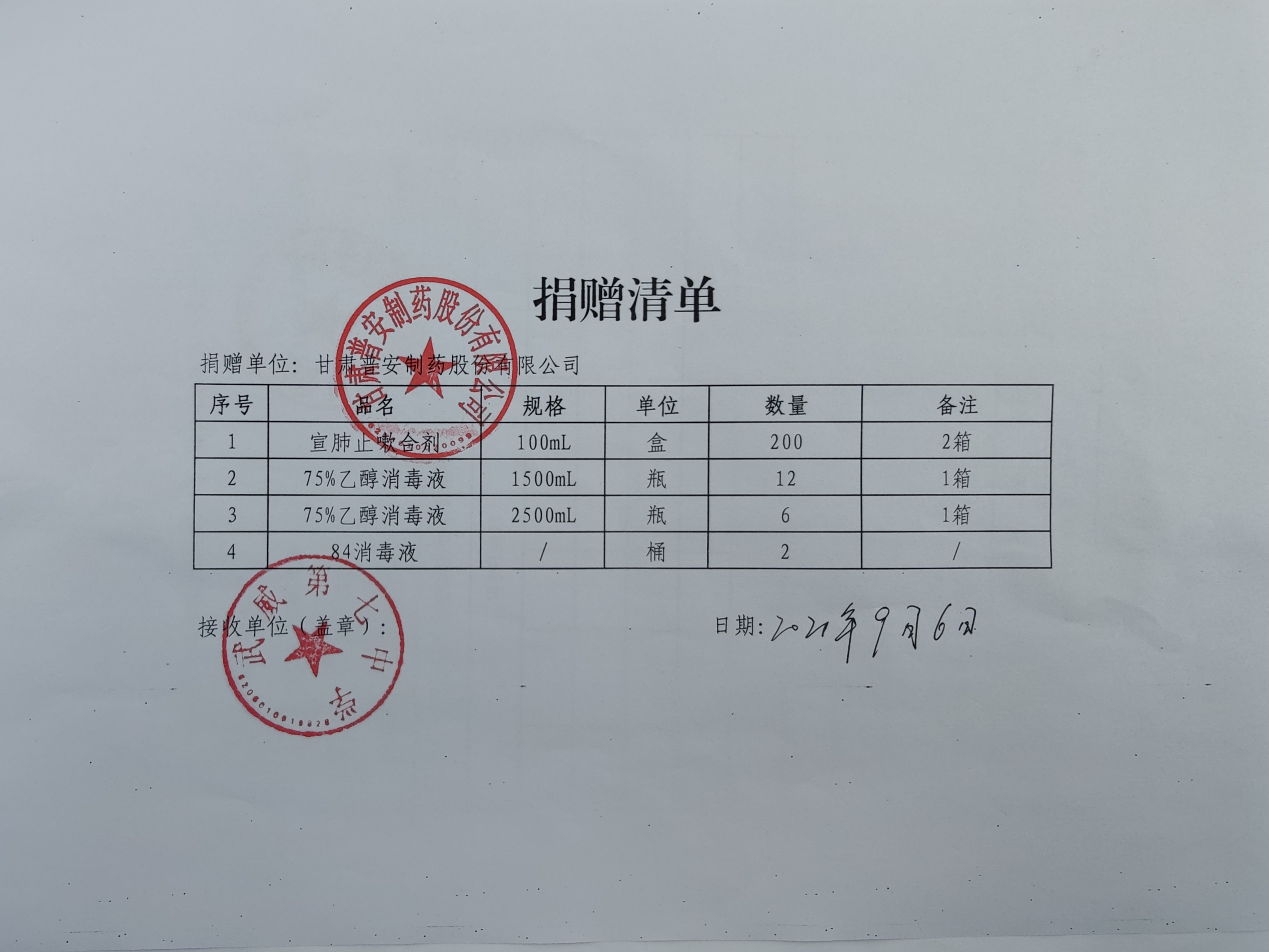 甘肅藥業集團普安制藥(以下簡稱:普安制藥)自成立以來,一直大力弘揚“普惠眾生、安康萬家”的企業理念,本著建設一流制藥企業、提供一流產品服務的目標,堅持黨領導企業,堅持創新發展,穩健經營。在企業發展的同時更是懷有對國家、對民族、對社會的責任和擔當,將“回報于社會”作為一項重要內容。