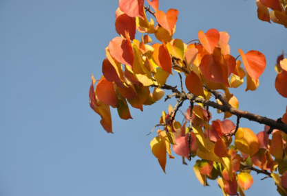深秋,風兒起,葉兒落。那一片一片紅黃相間的精靈,在清明的天空,裊裊娜娜,身姿曼妙。