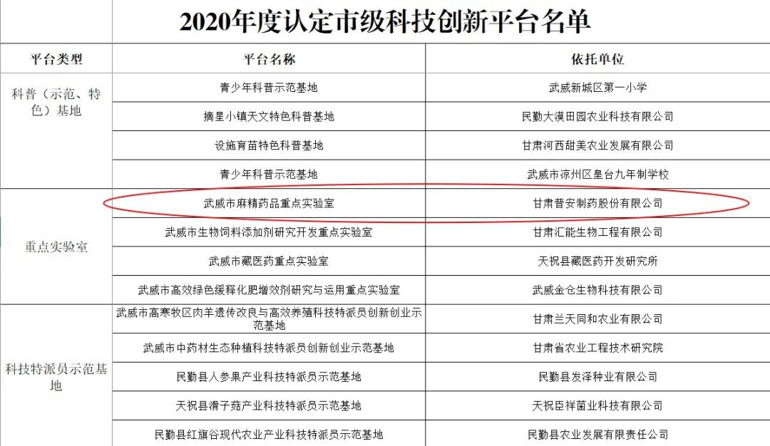 喜報(bào)!普安制藥通過“2020年武威市麻精藥品重點(diǎn)實(shí)驗(yàn)室”認(rèn)定