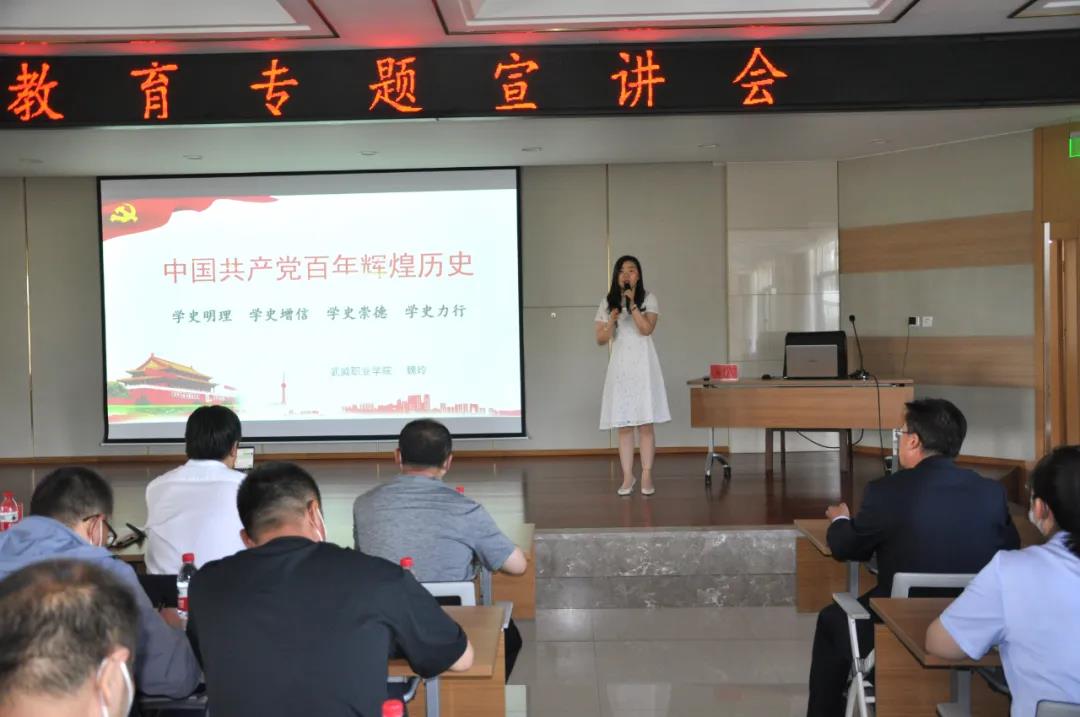 6月25日,按照武威市委統一安排,進一步把黨史學習教育作為增強“四個意識”、堅定“四個自信”、做到“兩個維護”的重要檢驗,甘肅普安制藥股份有限公司、甘肅省農業工程技術研究院、甘肅農墾藥物堿廠有限公司三個單位聯合舉辦了黨史學習教育專題宣講會。會議邀請武威市委宣講團成員、武威職業學院講師魏玲作黨史學習教育專題宣講——《中國共產黨百年輝煌歷史》。