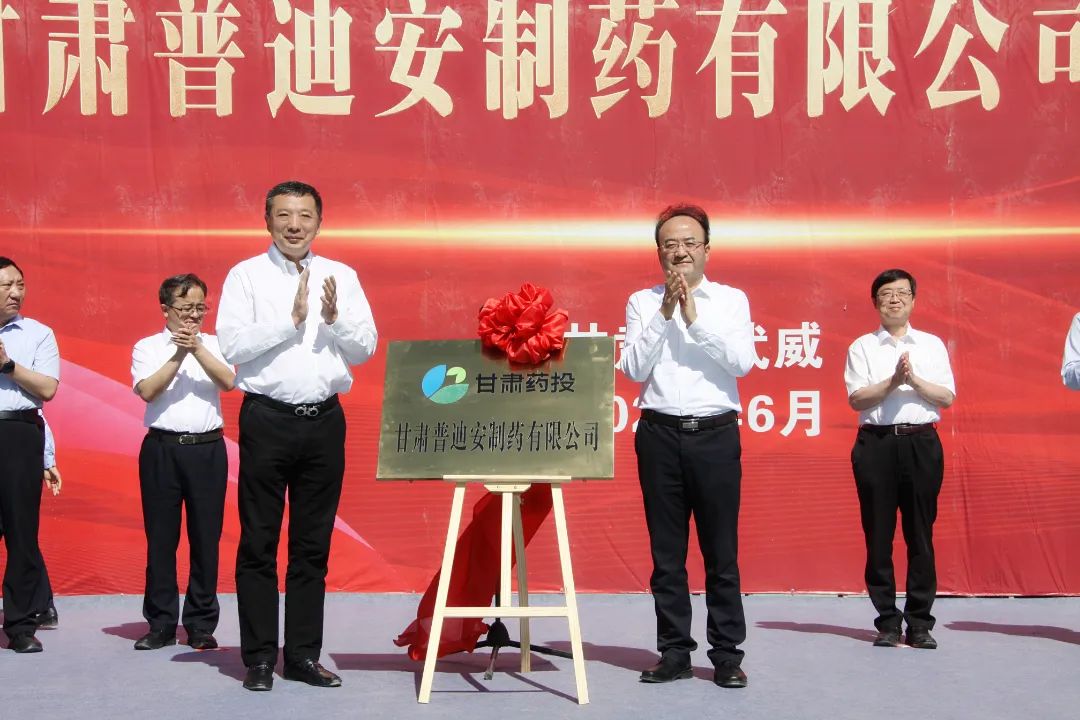 奠基儀式由武威市委常委、常務(wù)副市長(zhǎng)白振海主持,市委常委、涼州區(qū)委書記李萬岳、甘肅藥業(yè)集團(tuán)黨委副書記、總經(jīng)理竇生銘先后致辭講話。市委副書記、市長(zhǎng)王國(guó)斌與甘肅藥業(yè)集團(tuán)黨委書記、董事長(zhǎng)魏陽為甘肅普迪安制藥有限公司揭牌并宣布項(xiàng)目開工建設(shè)。