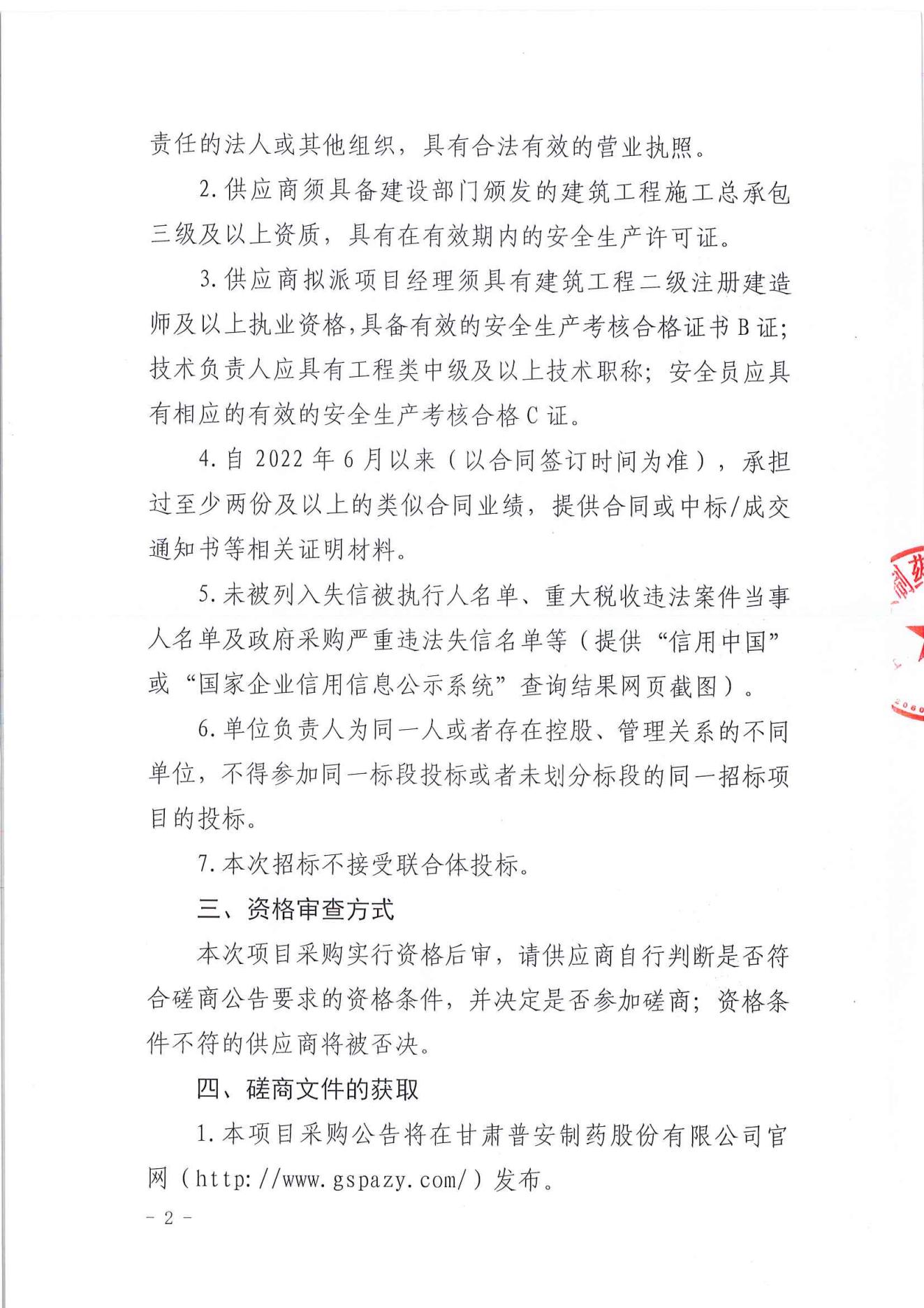 甘肅普安制藥股份有限公司年產5000萬盒(3億支)宣肺止嗽合劑等液體制劑生產線升級改造項目西門建設工程競爭性磋商公告